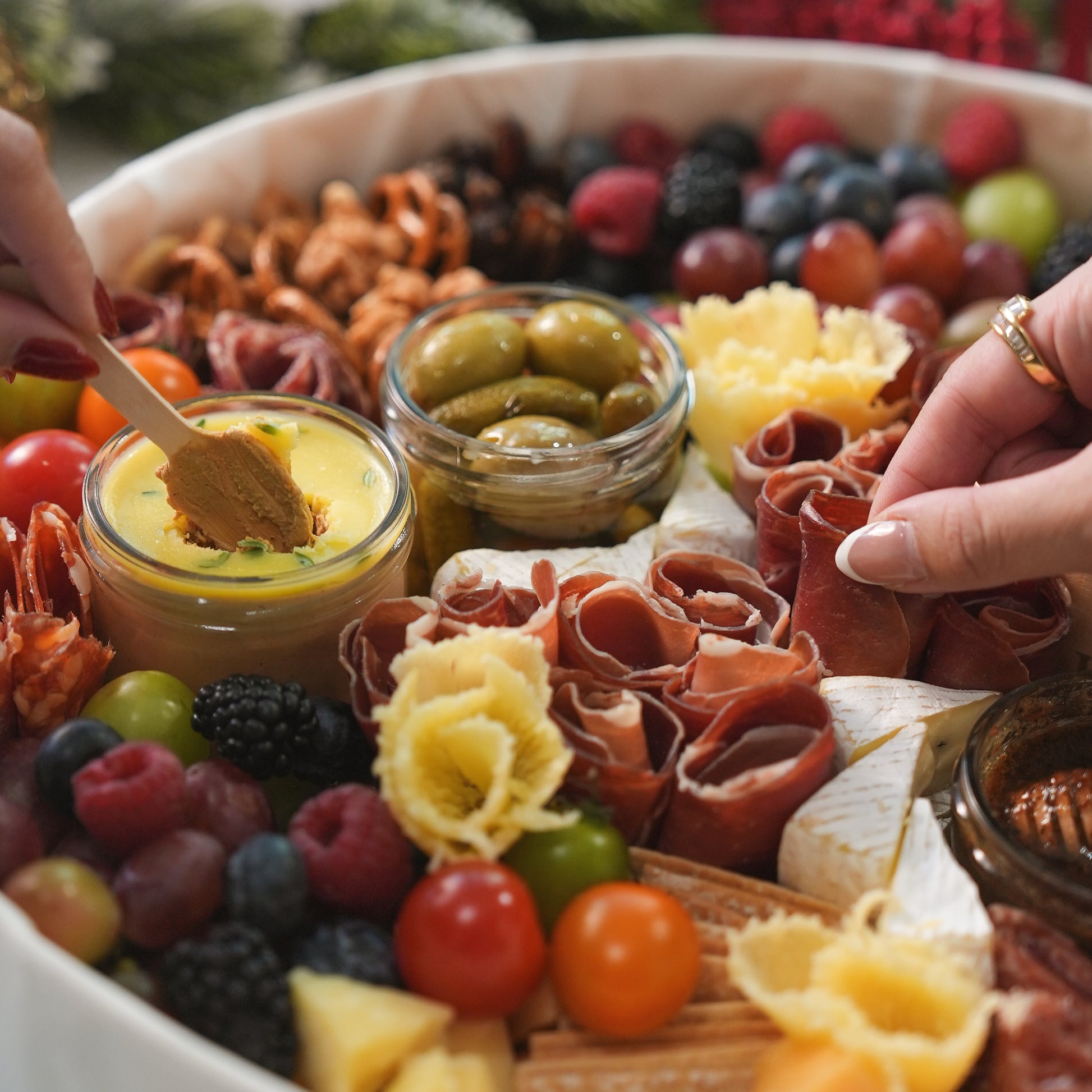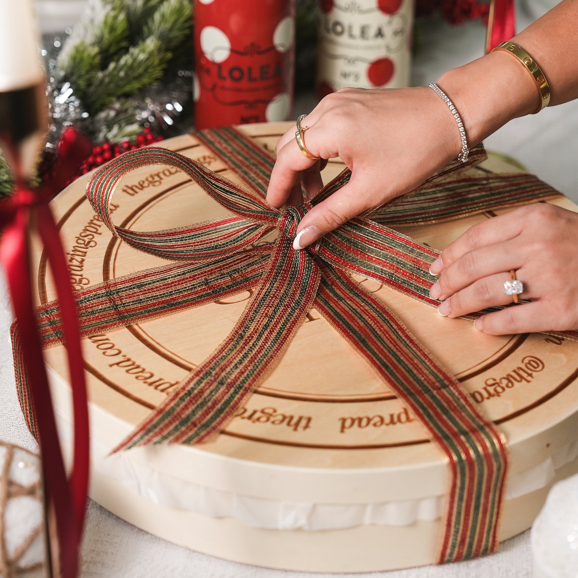 Our Signature Spread — our bestselling mid-size charcuterie board — in our festive holiday packaging, together with two bottles of LOLEA Sangria (Red and/or White, while supplies last).